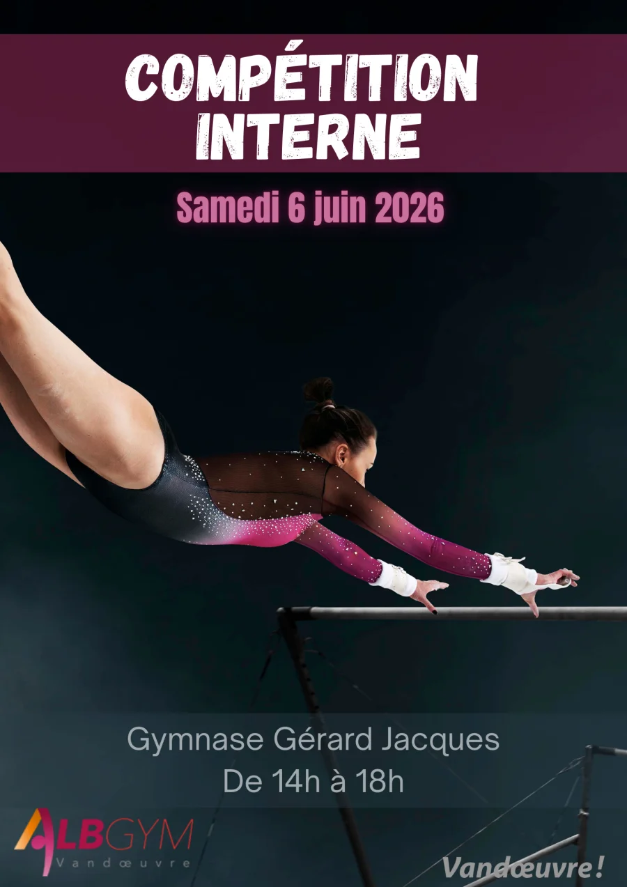 | MANIF ALB - COMPET INTERNE 2026 COMPET INTERNE 2026 : Samedi 6 juin 2026 Compétition organisée pour nos GYM LOISIRS le samedi 6 juin 2026 au gymnase Gérard jacques. Groupes concernés :